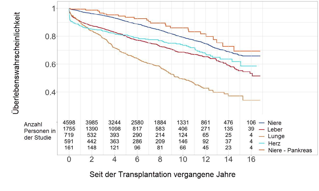 Überlebenswahrscheinlichkeiten der Organempfängerinnen und -empfänger