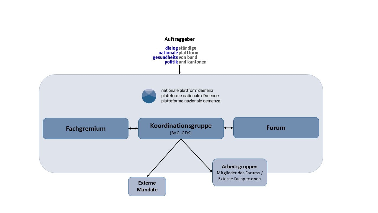 Nach Abschluss der Nationalen Demenzstrategie 2014 - 2019 von Bund und Kantonen haben sich zentrale Stakeholder für eine Fortführung der Massnahmen auf nationaler Ebene ausgesprochen. Aus diesem Grund wurde 2021 die Nationale Plattform Demenz ins Leben gerufen, die auf den Grundlagen der Strategie aufbaut.