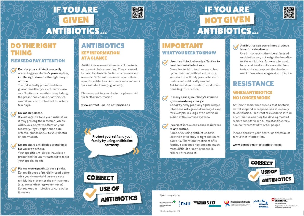 A survey conducted in Switzerland showed that 61% of the population in German-speaking regions, 66% in French-speaking regions and 52% in Italian-speaking regions knew that antibiotics can combat only bacteria,but not viruses.