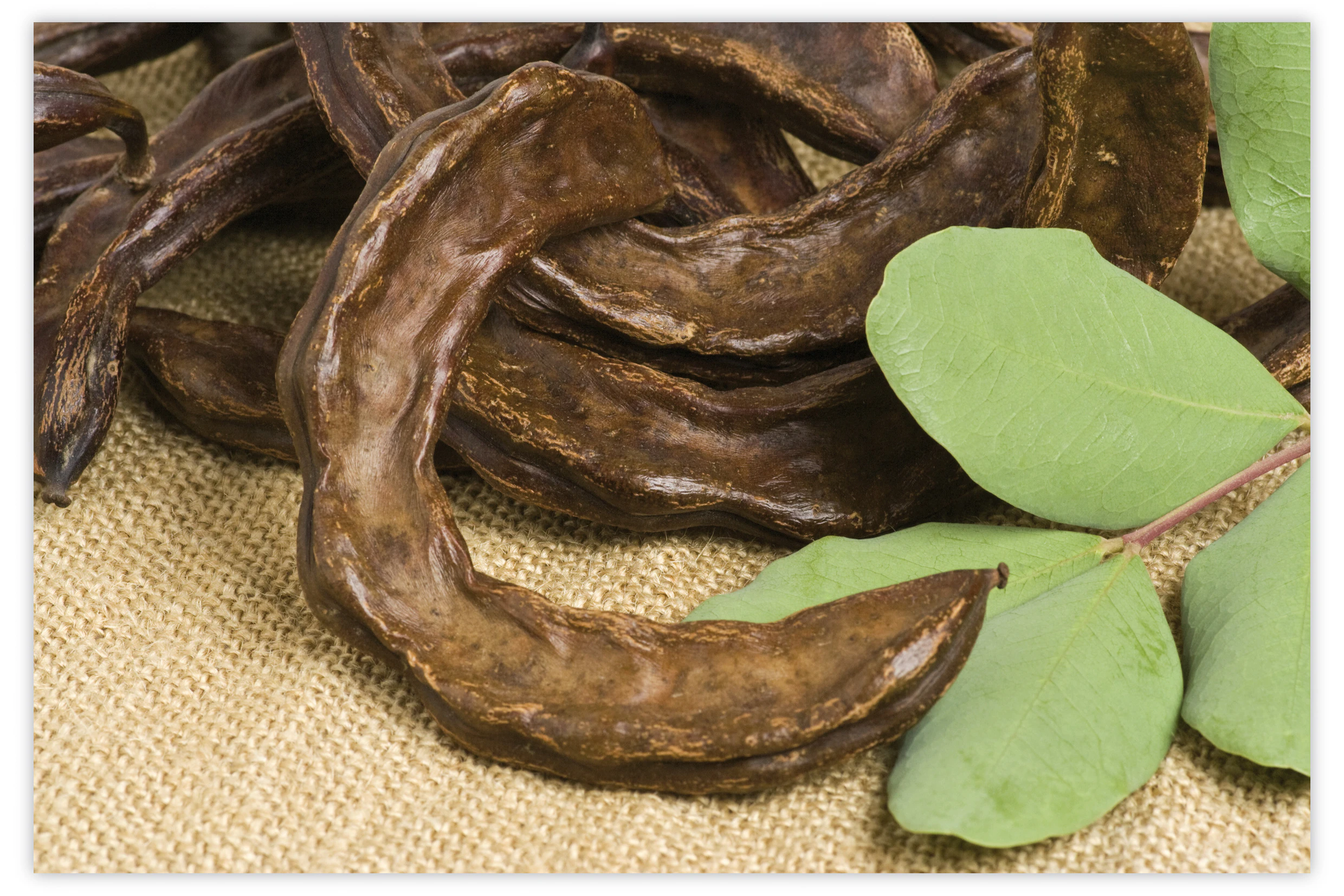 La caroube, ou gousse de caroube, est le fruit du caroubier, un arbre à feuilles persistantes. Chaque gousse de caroube contient des graines logées dans la pulpe de la gousse. Cette pulpe est riche en sucres et présente un goût et un aspect qui évoquent le chocolat. Elle peut être moulue en une fine poudre ou utilisée sous la forme d'extrait. Ces graines constituent également une source de gomme.