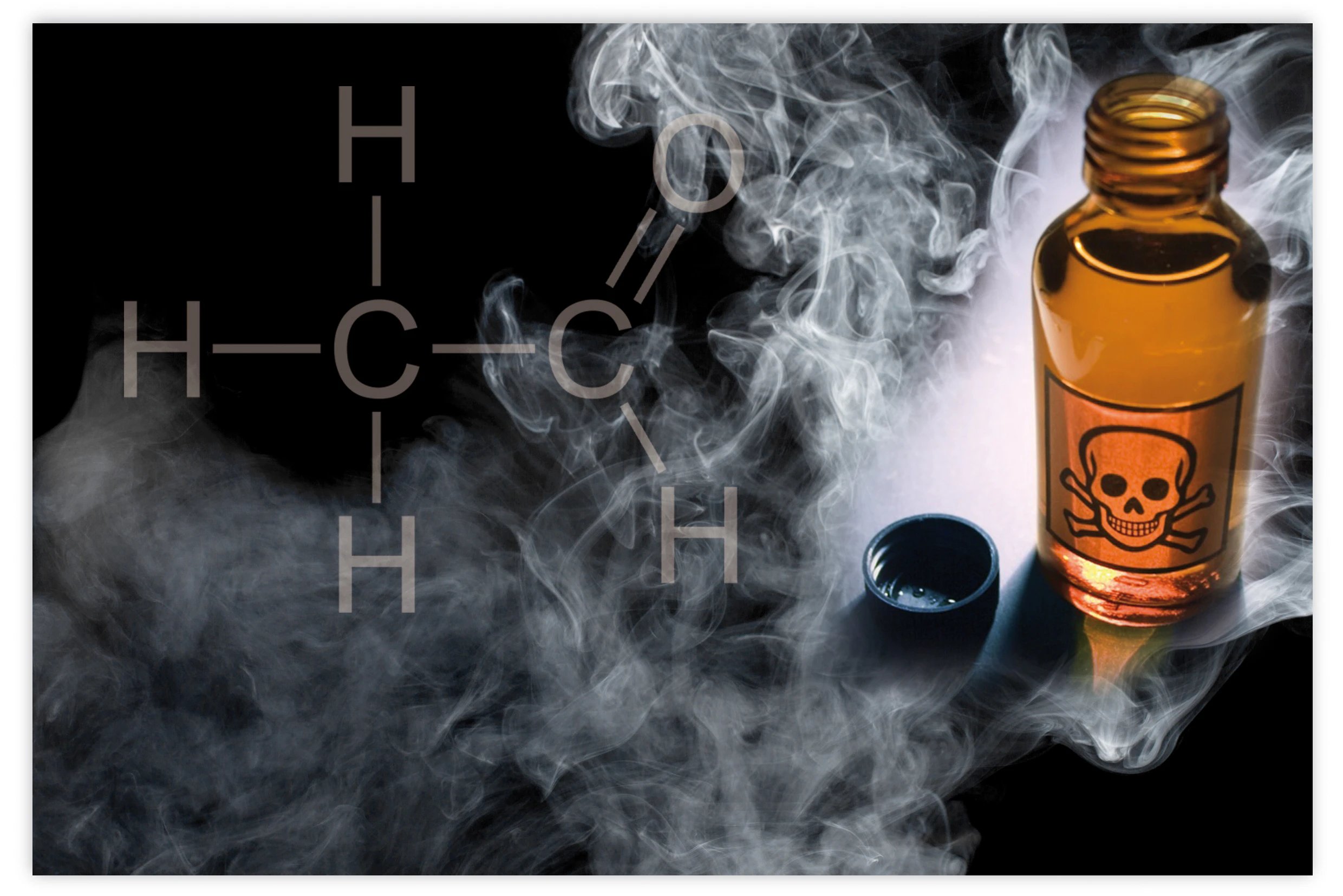 La fumée inhalée en fumant une seule cigarette (ou fumée principale) contient environ 1 milligramme d'acétaldéhyde. Cependant, certaines cigarettes peuvent en produire jusqu'à deux fois plus. Cela fait de l'acétaldéhyde l'un des principaux éléments composant la fumée de cigarette (après le goudron, la nicotine et le monoxyde de carbone).