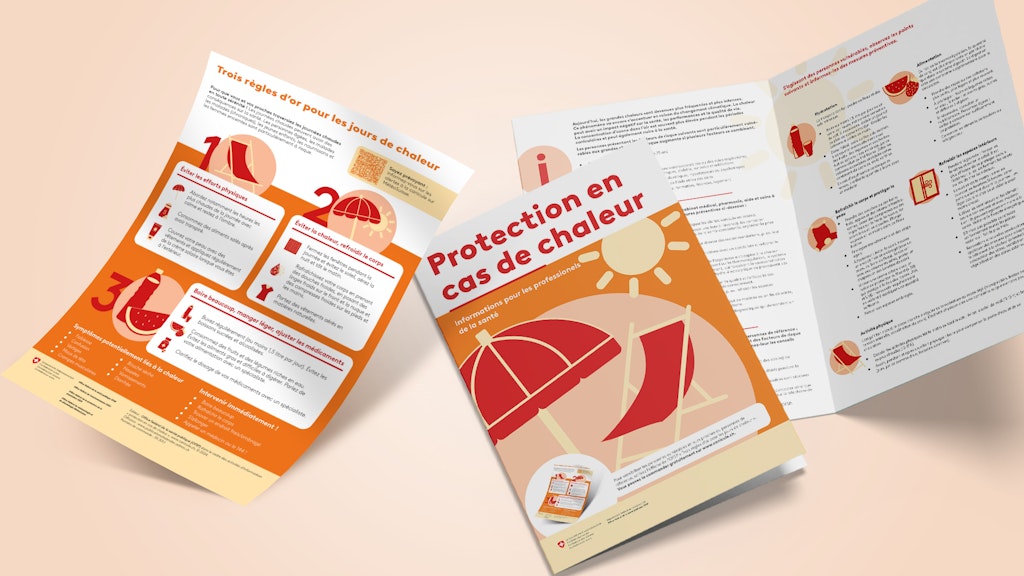 L’affiche contient des recommandations sur le comportement à adopter en cas de chaleur et les bons réflexes à avoir en cas de stress thermique. Disponible au format A4 ou format A3 (f/d/i/e), elle peut être téléchargée directement en ligne ou commandée gratuitement en version imprimée auprès de la Confédération.