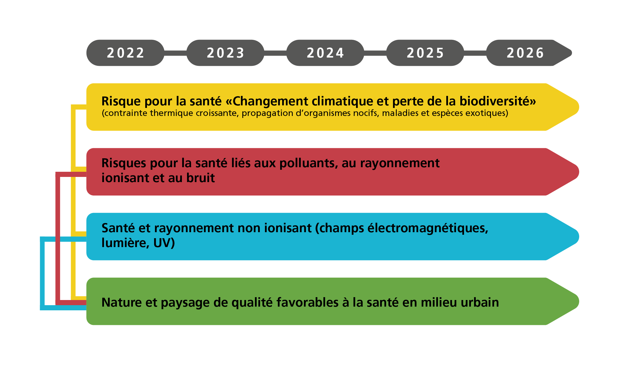 Le groupe d’accompagnement a entamé ses travaux en 2022. La feuille de route constitue un point de départ pour les réflexions sur l’interaction des acteurs de l’environnement et de la santé: