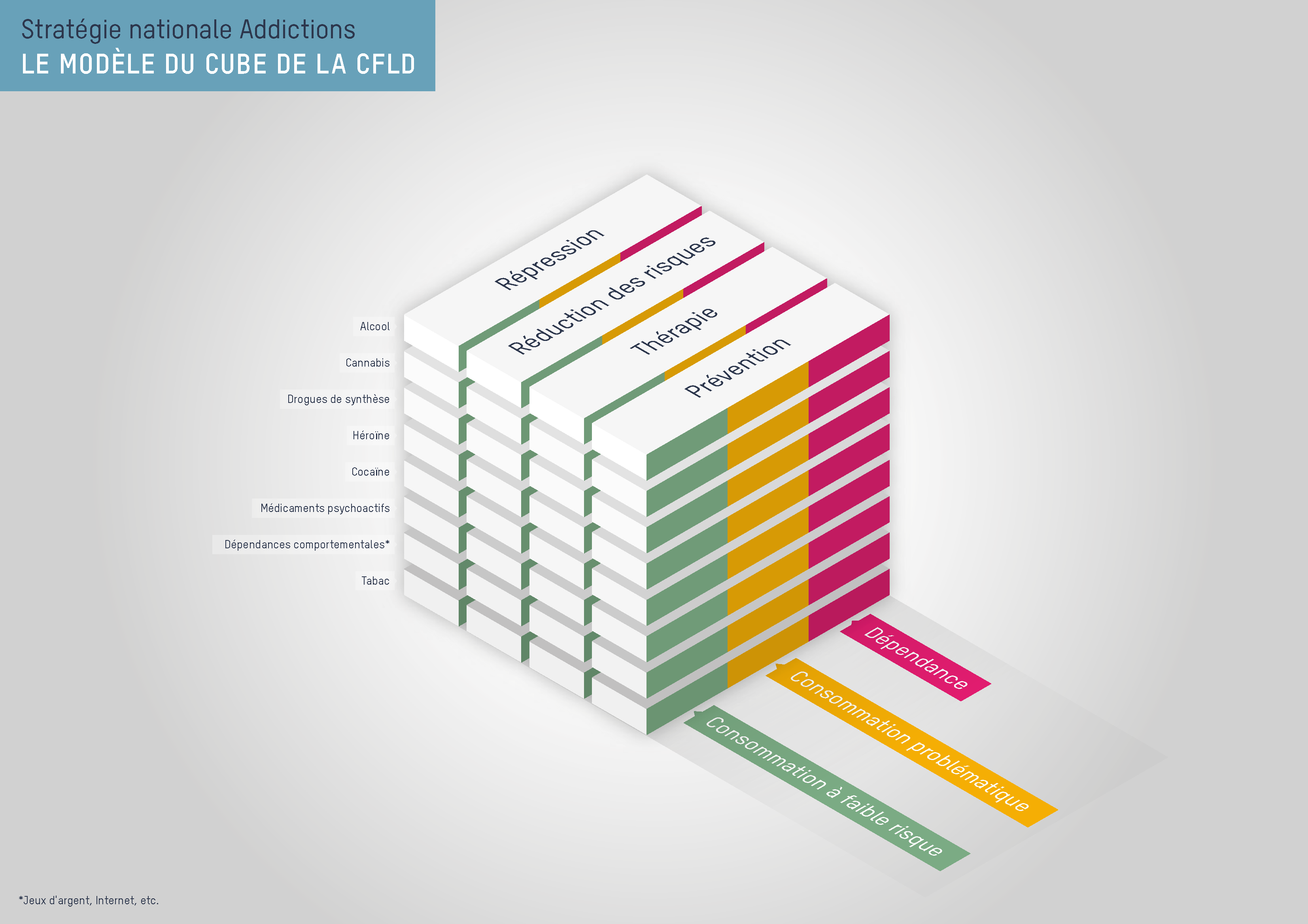 La Stratégie nationale Addictions 2017-2024 s’appuie sur ce modèle du cube.