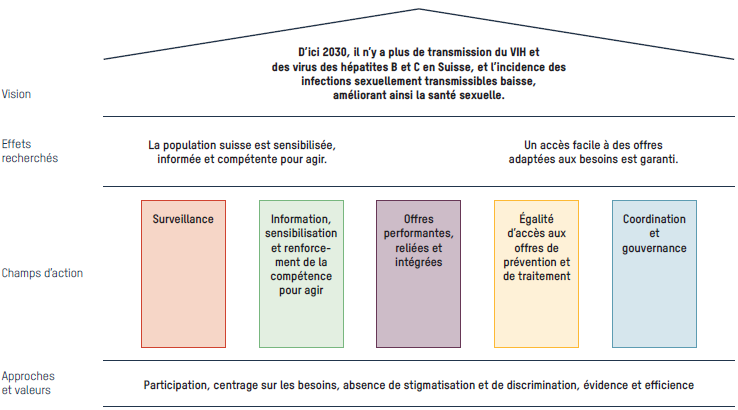 Avec son programme national « Stop au VIH, aux virus des hépatites B et C et aux infections sexuellement transmissibles (NAPS) » la Suisse poursuit un objectif ambitieux : d’ici 2030, elle entend éliminer toute transmission du VIH et des virus des hépatites B et C. S’agissant des autres infections sexuellement transmissibles (IST), le NAPS se fixe pour objectif d’inverser la tendance en limitant notamment la propagation de la syphilis et de la gonorrhée (blennorragie). En d’autres termes, le programme vise à réduire l’incidence de toutes ces infections, contribuant ainsi grandement à améliorer la santé sexuelle de la population.