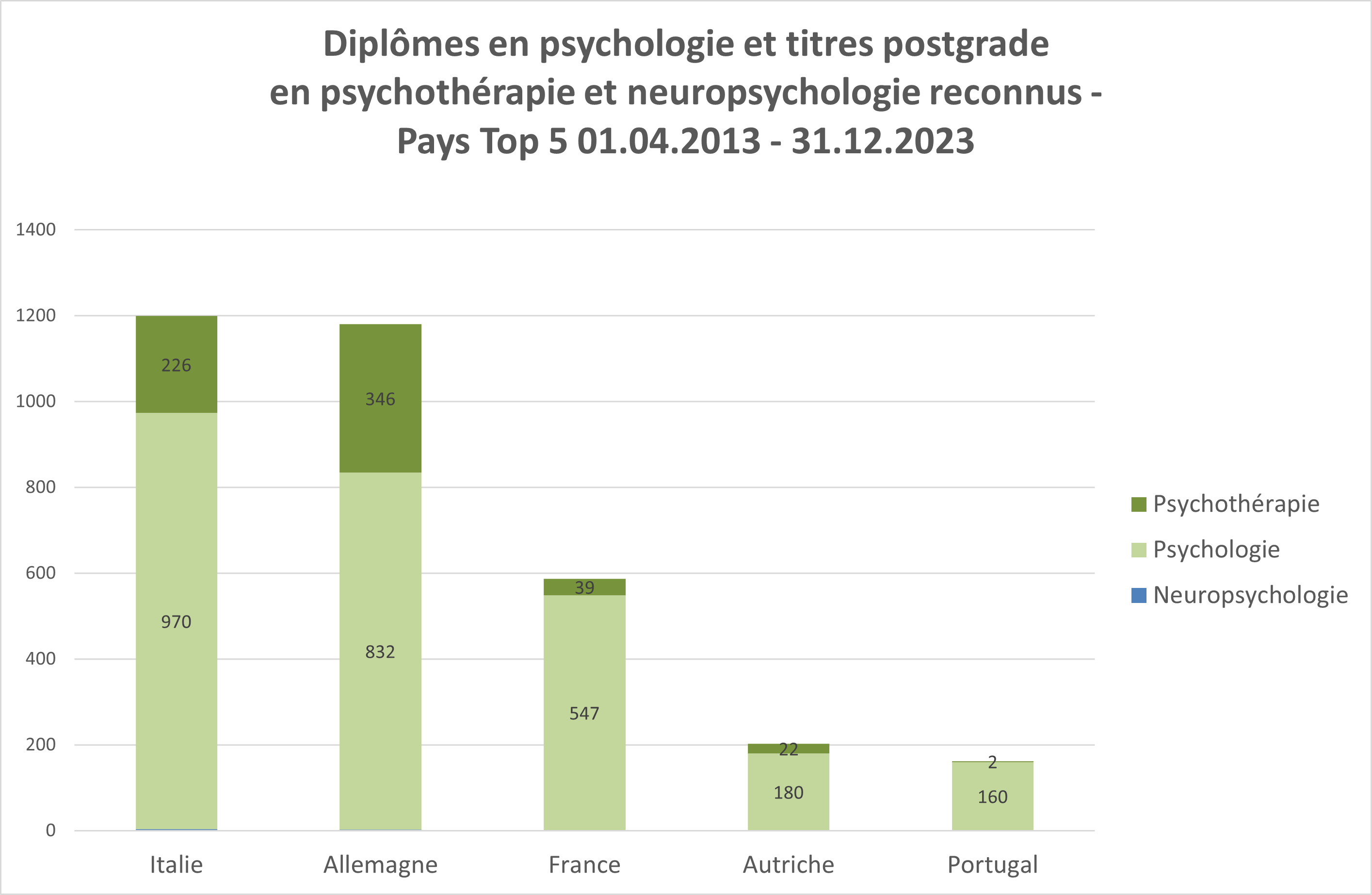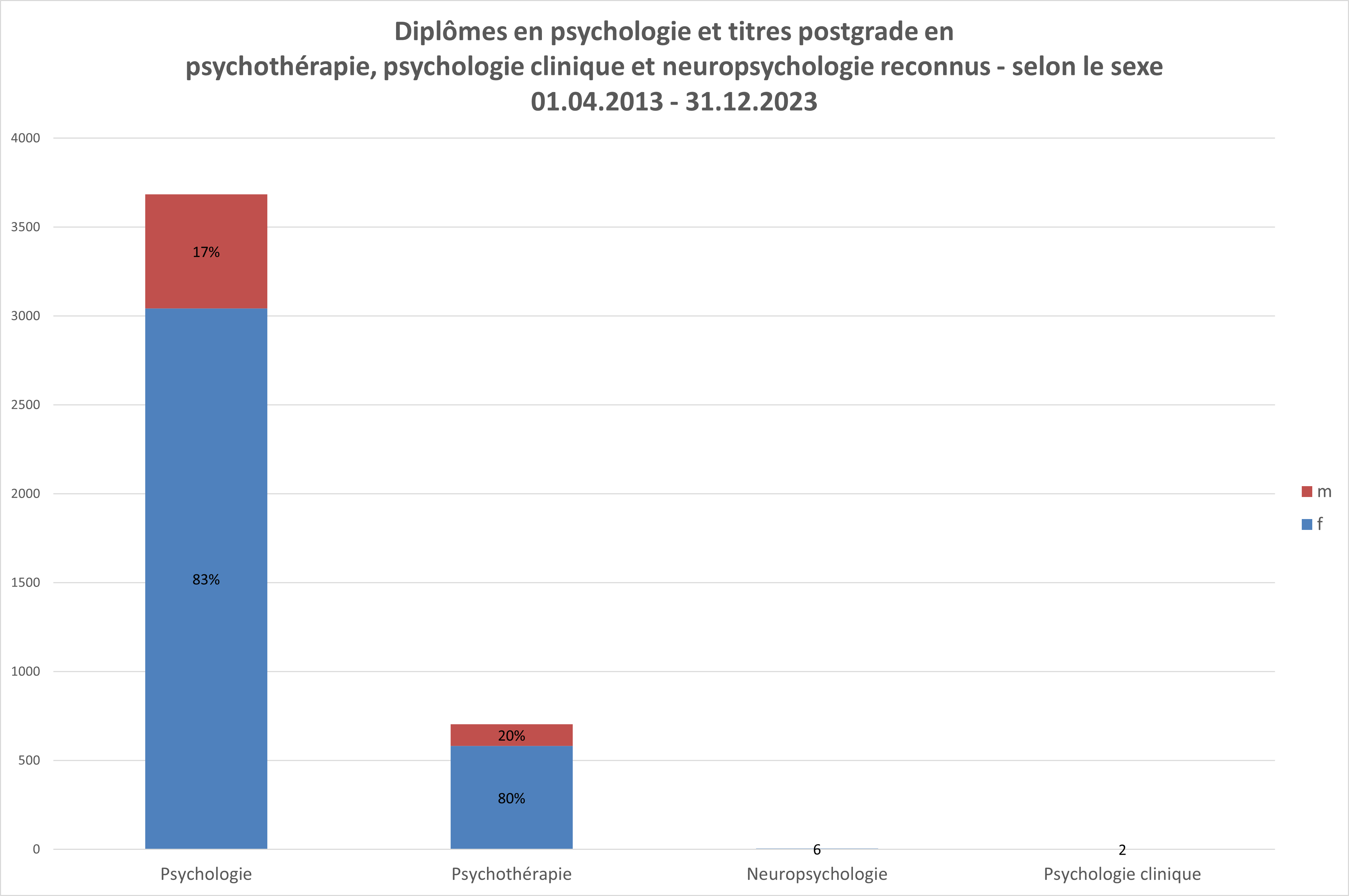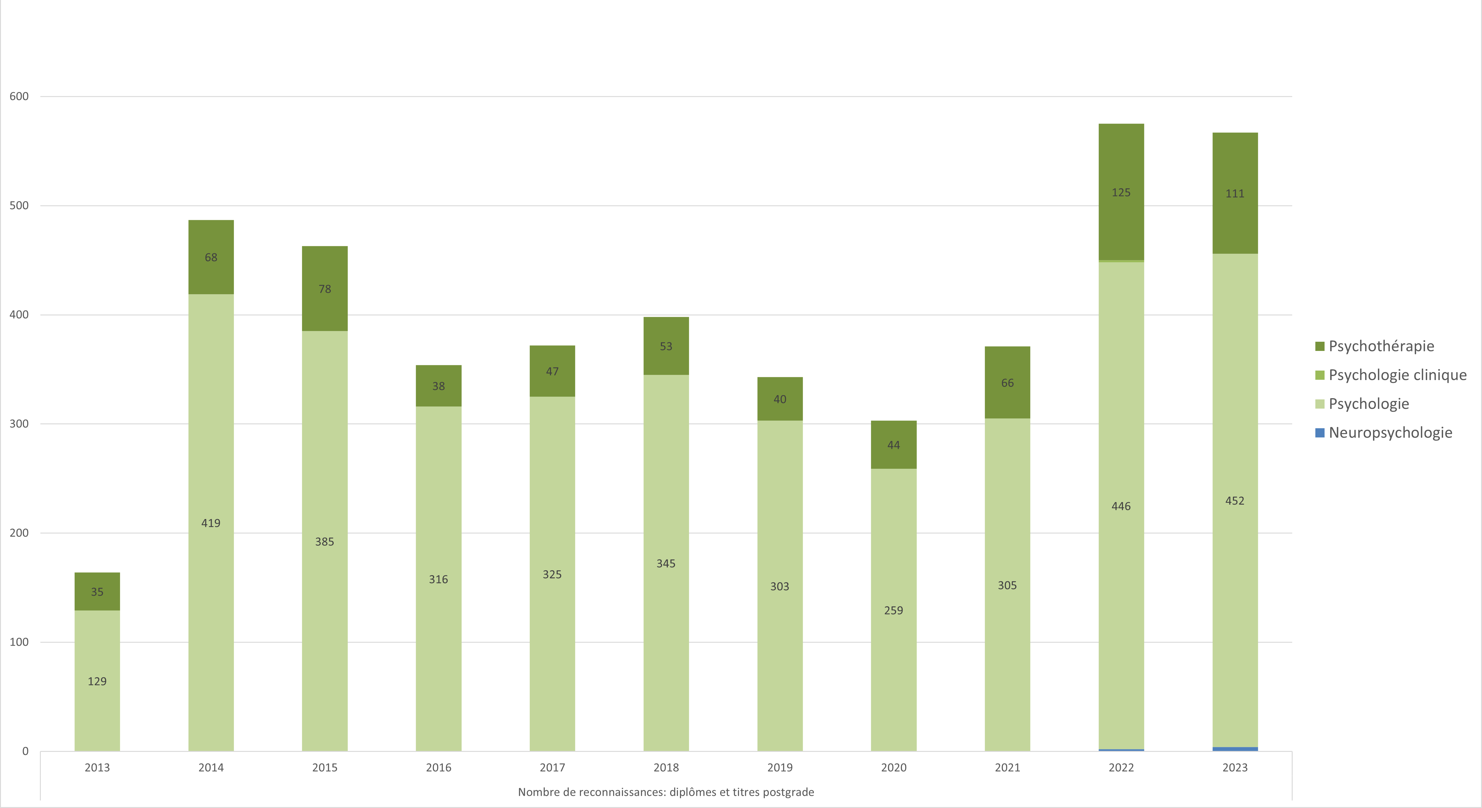 Du 1er avril 2013 au 31 décembre 2023, 3683 diplômes en psychologie et 706 titres postgrades ont été reconnus.
