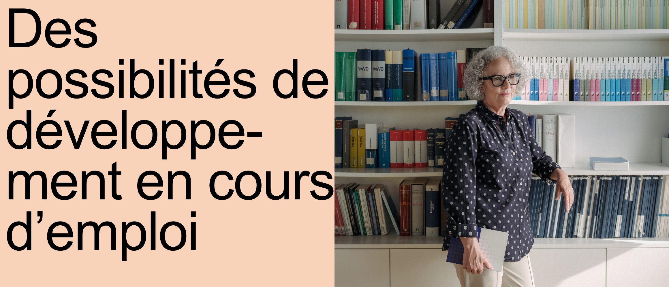 Chez nous, les formes de travail flexibles et mobiles ainsi que les modèles individuels de départ à la retraite n’existent pas qu’en théorie. Vous bénéficierez également d’une large offre de formations continues et de perfectionnement, d’un abonnement demi-tarif gratuit ou d’une réduction sur l’AG des CFF, ainsi que de divers rabais sur des produits, des offres et des événements.