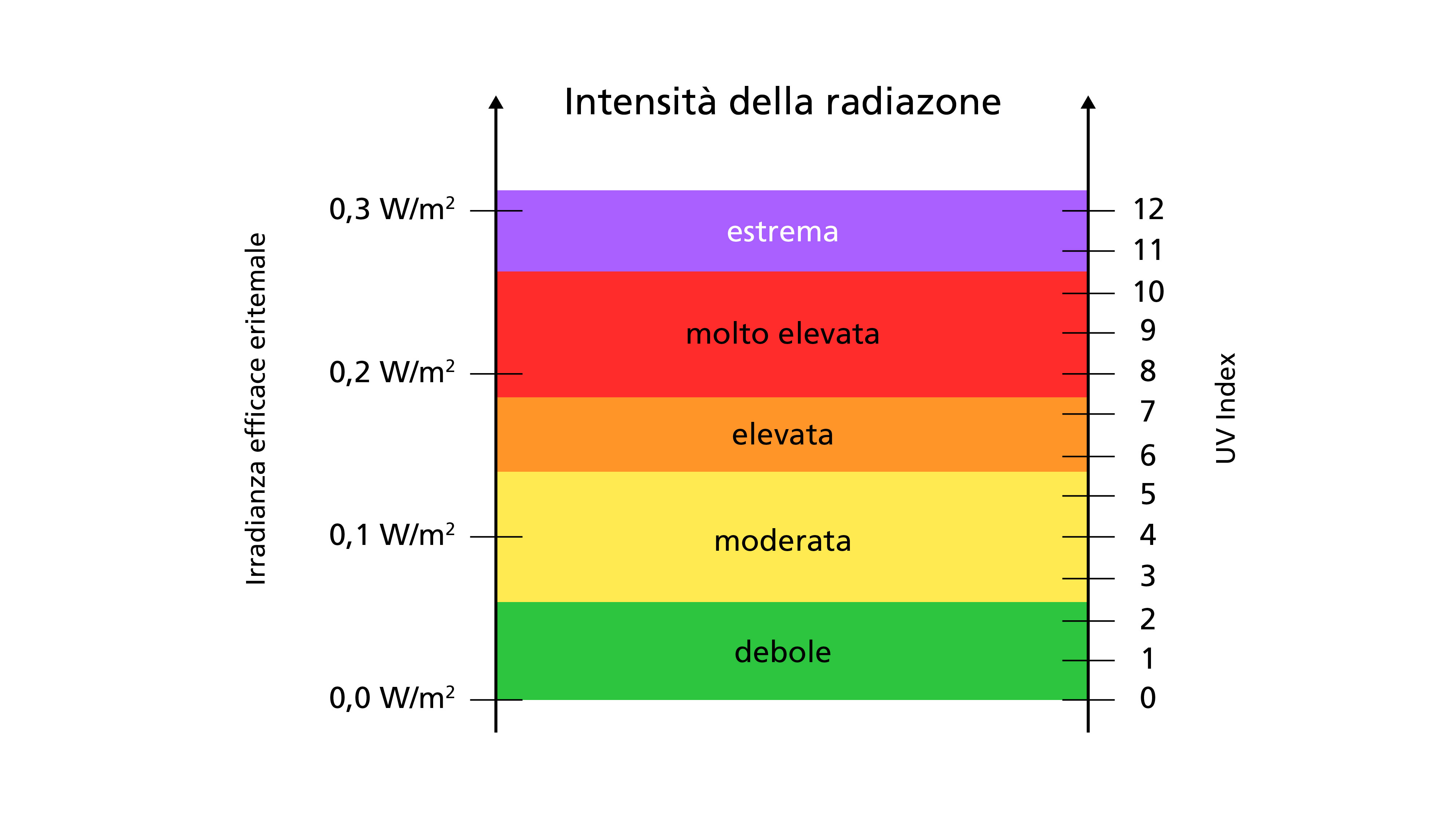 Più elevato è l’indice UV, più intensa e dannosa è la radiazione solare. L’indice UV ci aiuta a valutare meglio la radiazione solare e a proteggerci con misure adeguate dai pericoli connessi alla radiazione UV.
