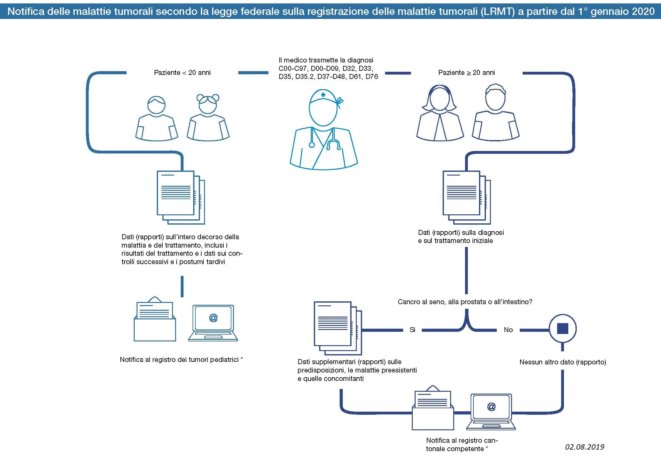 Con l’entrata in vigore della legge sulla registrazione delle malattie tumorali (LRMT; RS 818.33), medici, laboratori, ospedali e altre istituzioni pubbliche o private del settore sanitario sono tenuti a notificare le malattie tumorali al registro dei tumori competente.