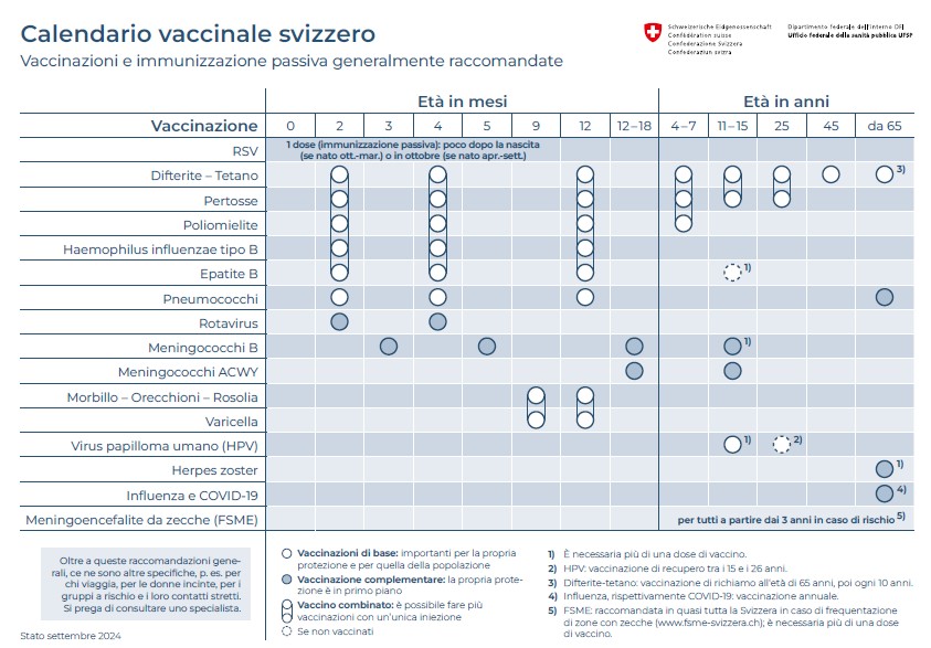 Alcune vaccinazioni devono essere ripetute periodicamente. L’UFSP raccomanda il richiamo di routine delle vaccinazioni contro la difterite, la pertosse e il tetano. Un recupero è indispensabile anche quando manca la protezione di base o le vaccinazioni sono incomplete. Particolarmente importanti sono le vaccinazioni contro il morbillo, gli orecchioni e la rosolia.